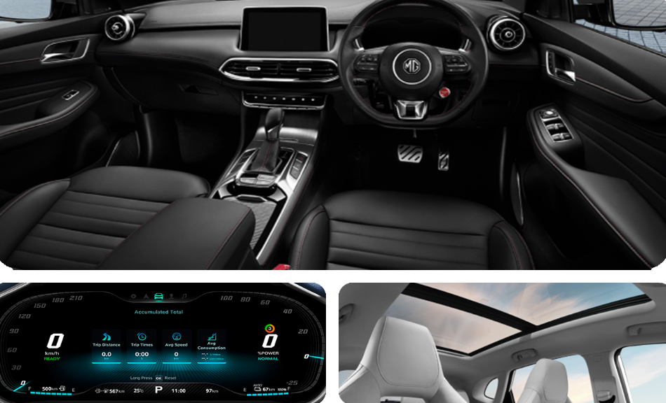 Kursi pengemudi dirancang dengan cermat menggunakan bucket seat sporty yang dapat diatur enam arah secara elektrik, sementara kursi penumpang depan menawarkan pengaturan empat arah. Dilengkapi dengan INVH Luxury Quiet Space, berkendara dengan MG HS BARU menjamin kenyamanan maksimal selama perjalanan Anda. Interiornya menawarkan dua pilihan desain: NAUTICAL BLUE YACHT STYLE dan FULL BLACK, keduanya menggunakan SOFT TOUCH PREMIUM LEATHER, memberikan sentuhan elegan khas Inggris yang sempurna. Selain itu, Anda dapat menikmati keindahan langit melalui ELECTRIC I-MAX PANORAMIC SUNROOF saat berkendara dengan MG HS BARU.